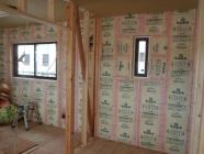 ☆先週の工事☆ 木工事(壁断熱材入れ、窓枠取り付け、床フローリング 貼り、他) 保証機構、外装下地検査 ☆今週の予定工事☆ 木工事(壁断熱材入れ、窓枠取り付け、床フローリング 貼り、壁下地合板・プラスターボード貼り、他)