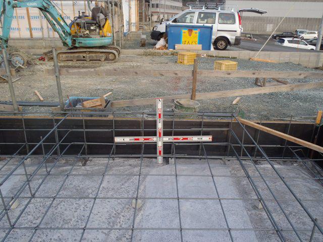 ・基礎工事、鉄筋組み・加工を終え 保証機構JIOによる配筋検査を受け、ベースコンクリート