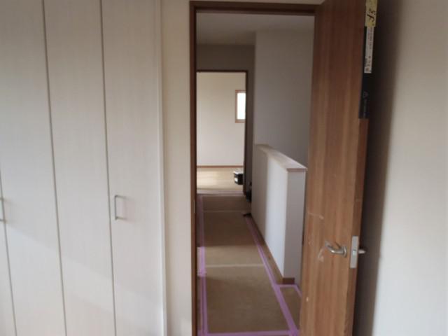 ・内部木工事 壁造作を終え、建具吊込、幅木取付、造作棚