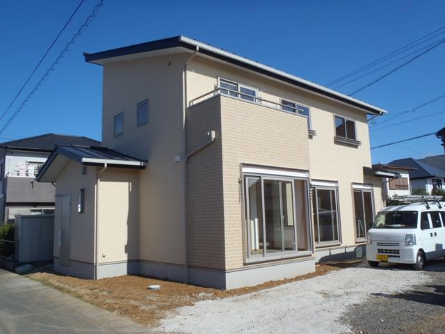 ・内装クロスを終え内部電気・衛生器具付け、ハウスクリーニングと内部 仕上げ、外部給排水埋設、エコキュート据付、タイル工事が完了し 検査機構による完了検査を受けました。 洗面化粧台設置後通水試験・エコキュート試運転と確認し、網戸 入れ・サッシ調整をします。