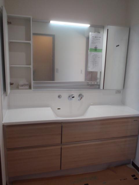 ・内部電気・衛生器具付け、外部エコキュート据付と進み、検査 機構による完了検査を受けました。 通電・通水排水試験、 太陽光発電 パワコン・接続箱等の仕上げを行い太陽光連携 床養生引上げ、ハウスクリーニングを行います、建物完成まで 後わずかとなりました。