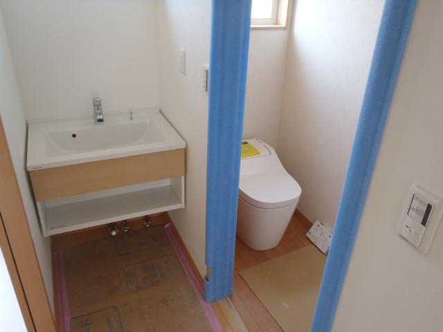 ・仕上げ工事 衛生器具、配管類接続 太陽光パワコン・接続 箱等取付、中電連携へと進みました、ハウスクリーニング、検査 機構完了検査を受けます。