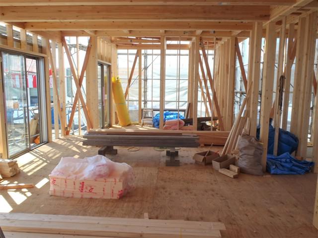 ☆先週の工事☆ 木工事(サッシ取付、2階天井下地組み、他) 外壁シート貼り ☆今週の予定工事☆ 木工事(2階天井下地組み、外壁下地材打ち、軒天下地 組み、他)
