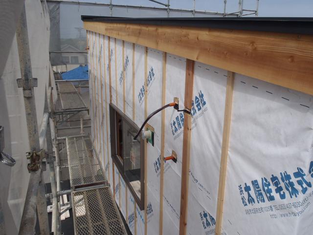 ・外壁下地シートを張り終え、外壁下地材(胴縁・貫)をサイディング
