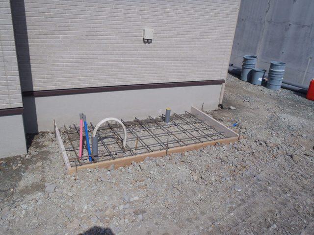 ・外部 建物廻り給排水埋設を行い、エコキュート配管・型枠入れ
