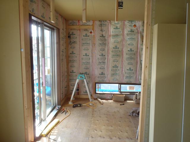 状況確認しながら引込します。木工事壁納め、2階開口部廻り