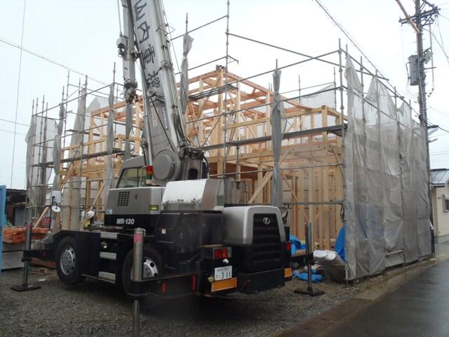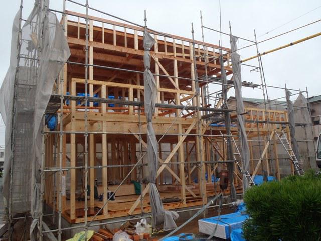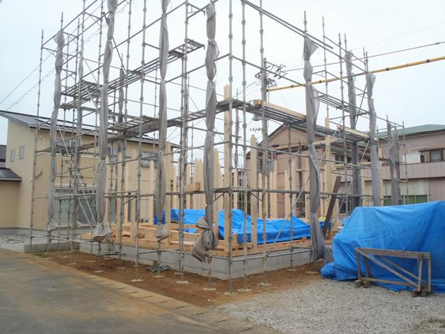 ☆先週の工事☆ 木工事(土台据え、床下地組み、上棟準備、他) 上棟 先行足場組み ☆今週の予定工事☆ 木工事(屋根下地プラスターボード敷き、ルーフィング葺き 筋カイ・間柱入れ、他)