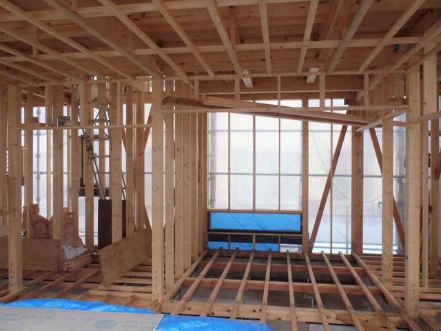 木工事(天井下地組み、床下地断熱材入れ及び