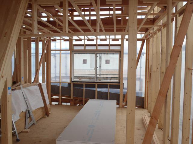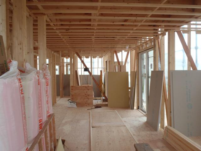 断熱材入れ、及び天井ボード貼り、壁断熱材入れ、他)