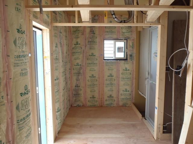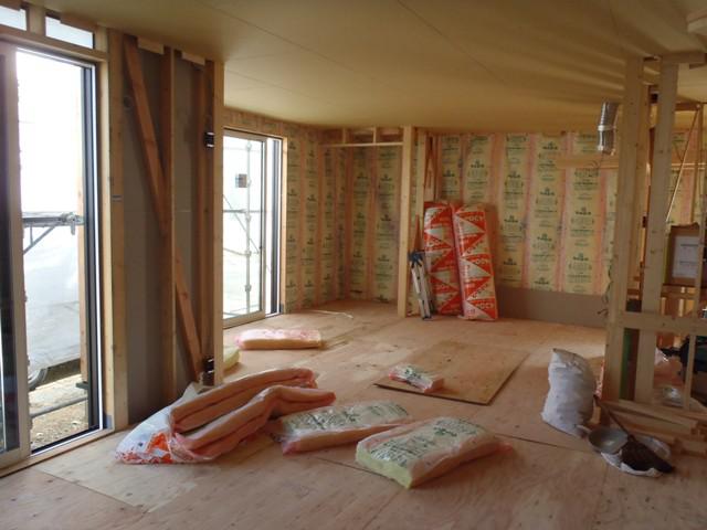 ☆先週の工事☆ 木工事(外壁下地材打ち、軒天下地組及び軒天ボード 貼り、1階天井ボード貼り、壁断熱材入れ、他) 保証機構、外装下地検査 ☆今週の予定工事☆ 木工事(2階フローリング貼り、床養生、他)