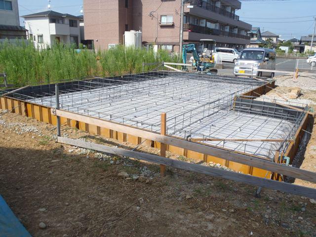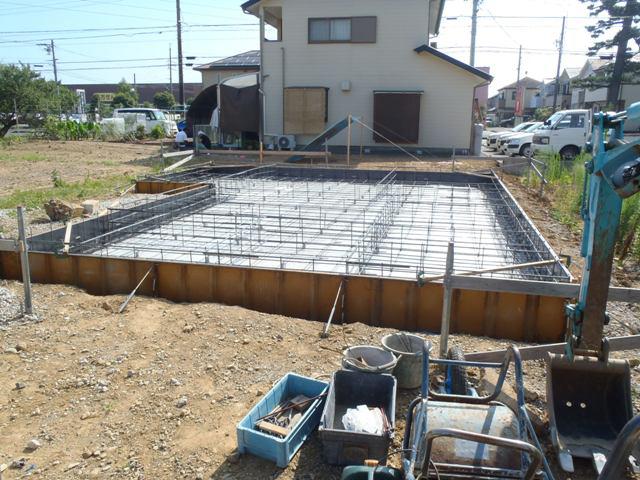 ・基礎工事、砕石地業、土間シート敷き、ベース型枠組み 鉄筋加工・鉄筋組みをし保証機構JIOによる配筋 検査(鉄筋組み状況、型枠と鉄筋との間隔等確認)を 受けベースコンクリートを打ちました。 ・当社夏季休暇を9日より16日まで頂きます。