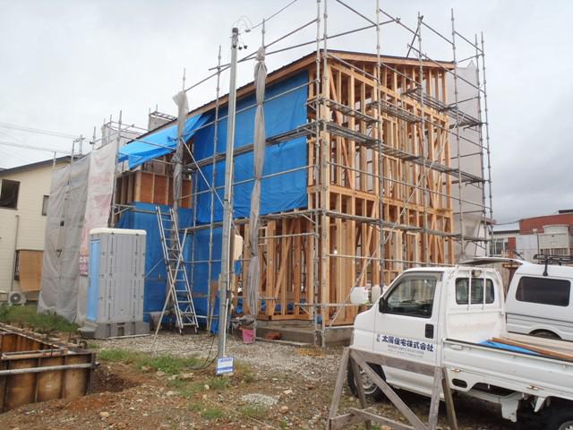 構造検査を受けました。 土台水切り、サッシ取付を行い