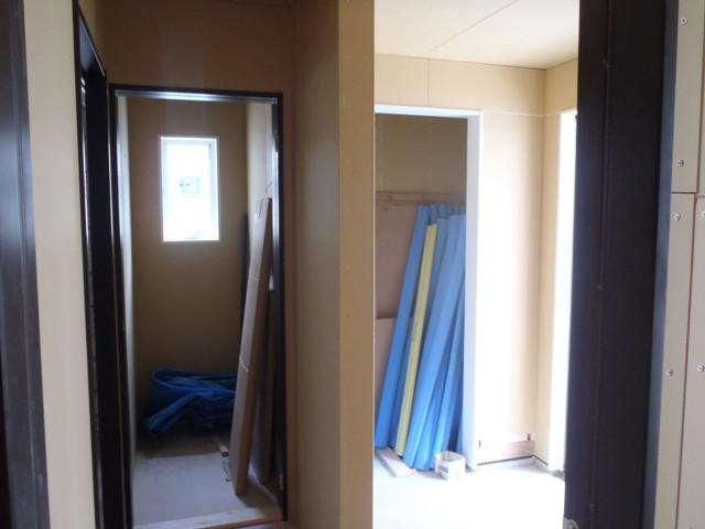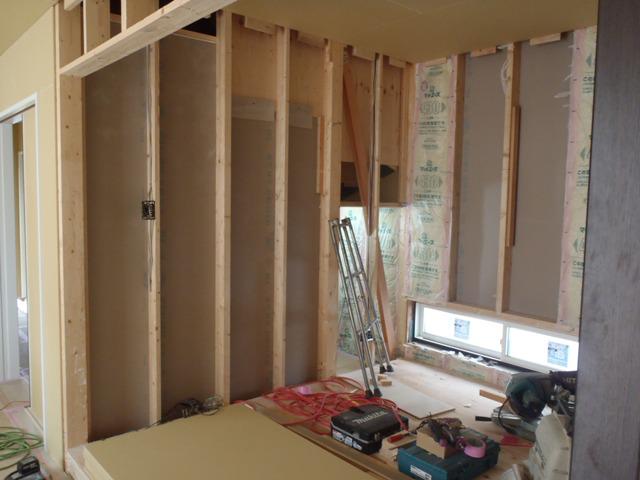 ☆先週の工事☆ 木工事(ドア枠取付、壁下地合板・ボード貼り、棚類取付、他) 外壁工事(板金葺き) ☆今週の予定工事☆ 木工事(壁ボード貼り、棚類取付、幅木・回し縁取付、 建具吊り込み、他) 外壁工事(板金葺き)