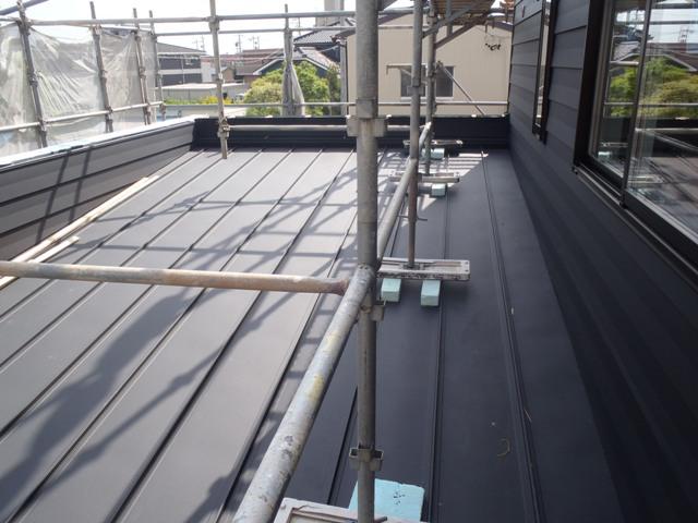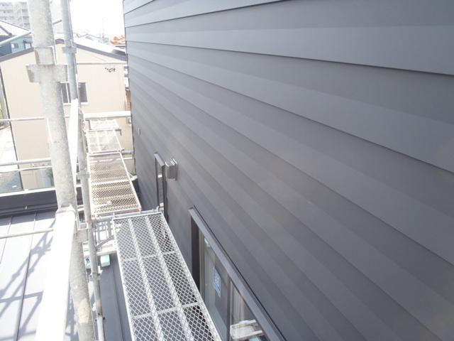・外壁板金を葺き終え、パラペット笠木・入出墨角役物取付を
