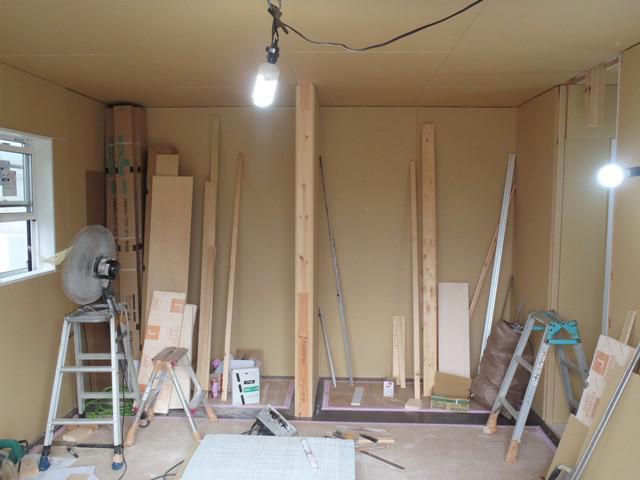 木工事(2階ドア枠取付、壁ボード貼り、固定棚取付、他)
