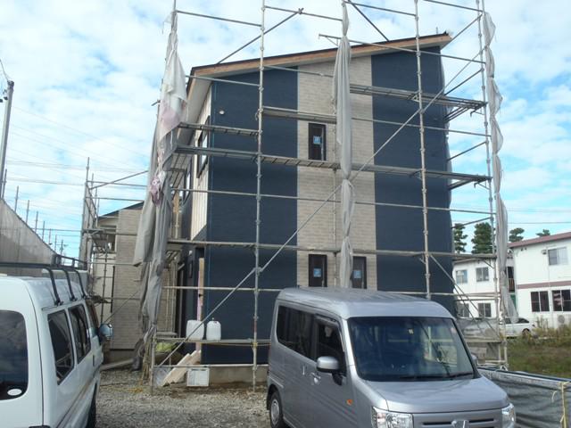 ・外壁工事、サイディング貼りが完了しコーキング打ちへ入ります、