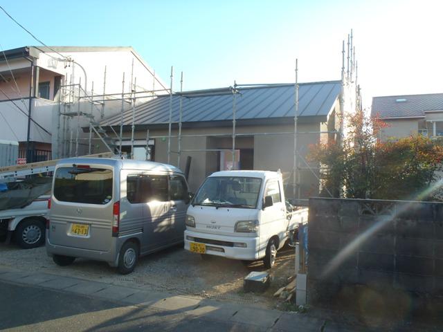 板金を納め、軒樋・縦樋掛け進めてます。換気扇類フード類、