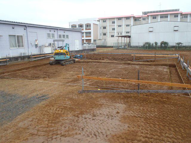 ・地鎮祭おめでとうございます。 地盤調査し、しっかりとした 地耐力を確認し基礎工事へ着手しました。 ・建物基準(基礎高さ)、建物位置出し 丁張を行い、掘削作業を 行ってます。