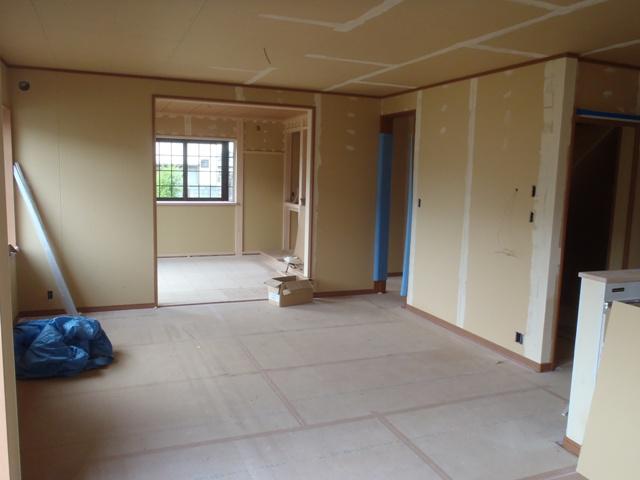 給排水埋設と進めます。 内部木工事2階建具枠を取付