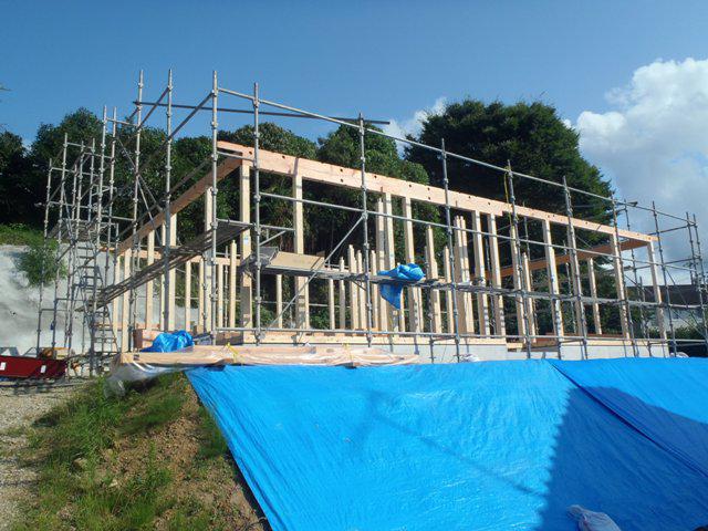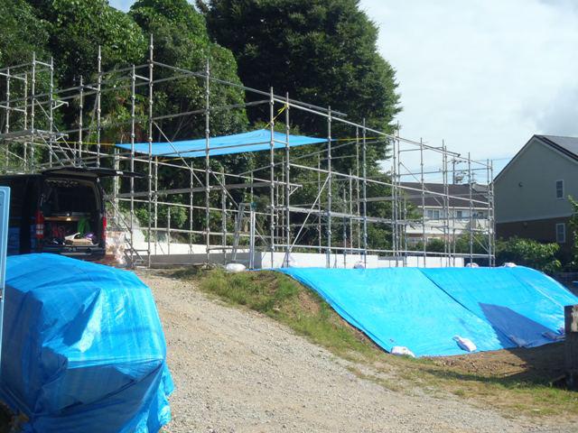 ☆先週の工事☆ 木下地材・構造材搬入 先行足場組み 上棟 ☆今週の予定工事☆ 木工事 屋根工事(ルーフィング葺き、カラーベスト葺き、他)
