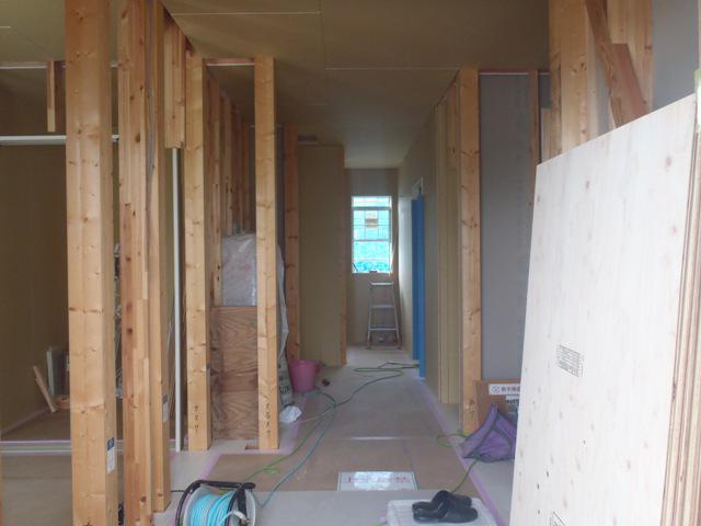 ☆先週の工事☆ 木工事(ドア開口枠取付、壁ボード貼り・下地合板貼り、 壁断熱材入れ、他) ☆今週の予定工事☆ 木工事(ドア開口枠取付、壁ボード貼り・下地合板貼り、他) 外部換気フード類取付 外部足場解体