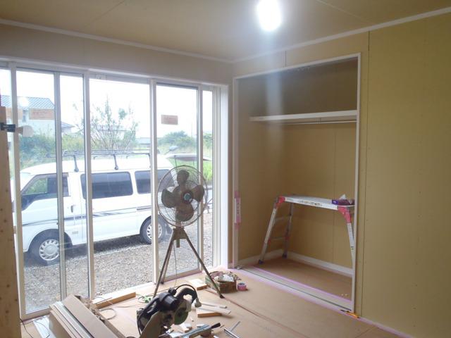 ☆先週の工事☆ 木工事(ドア開口枠取付、壁ボード貼り、下地合板貼り、 固定棚類取付、他) ☆今週の予定工事☆ 木工事(ドア開口枠取付、壁ボード貼り・下地合板貼り・ 固定棚類取付、幅木・回し縁取付、他)