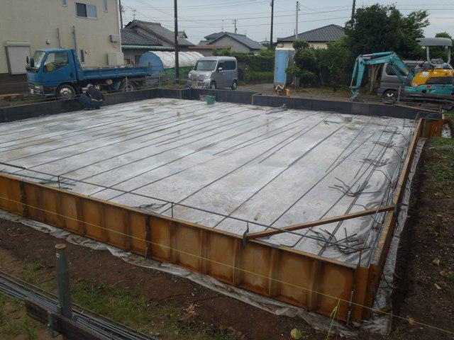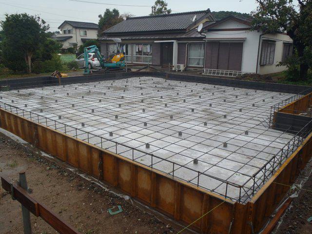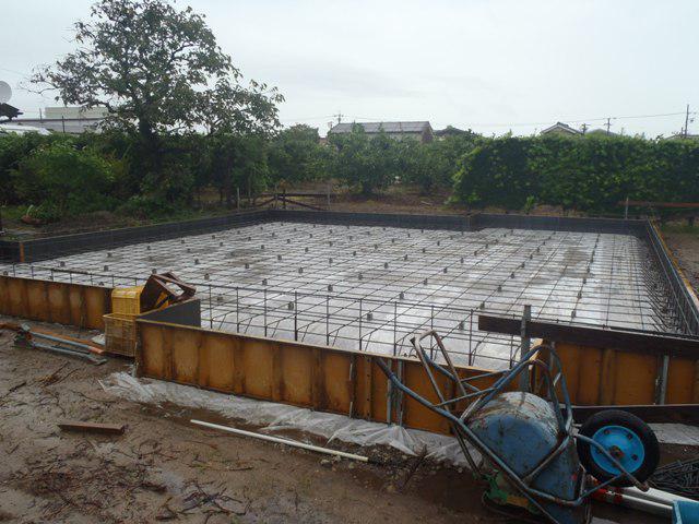 間隔など)を受けベースコンクリートを打ち、立ち上がり部型枠組み