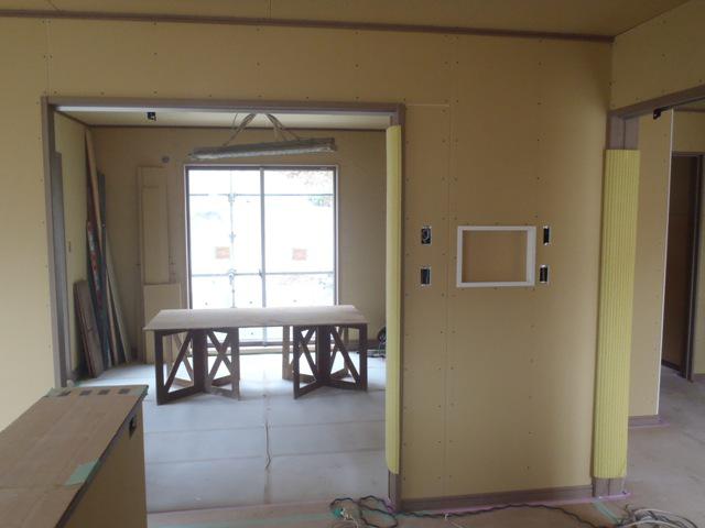 ・内部木工事まとめて頂きありがとうございます。 キッチン据付・内装クロス後、残工事宜しくお願い致します。 ・内装クロス下地、パテ入れ出来る所より進めさせて頂きます。 外部板金工事・破風鼻隠し、樋掛け来週末より板金工事後 外部フード類、アンテナ等仕上げていきます。