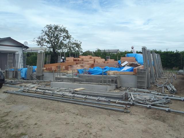 ☆先週の工事☆ 基礎工事(型枠解体、埋め戻し整地、他) 構造材・下地木材搬入 NTT電柱建て込み 上棟準備 足場組み ☆今週の予定工事☆ 上棟 木工事(筋カイ入れ、構造金物取付)
