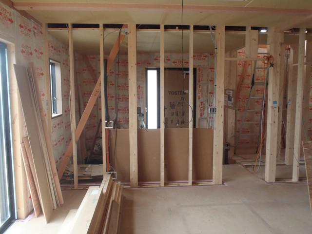 木工事(壁断熱材入れ、天井断熱材入れ、天井ボード貼り、