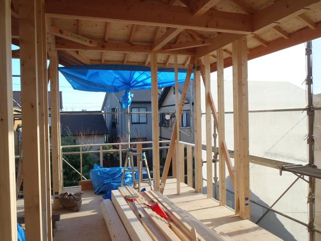 ☆先週の工事☆ 木工事(筋カイ・間柱入れ、構造金物取付、サッシ開口造作) ☆今週の予定工事☆ 木工事(サッシ開口造作、サッシ取付、ベランダ下地 造作、他)