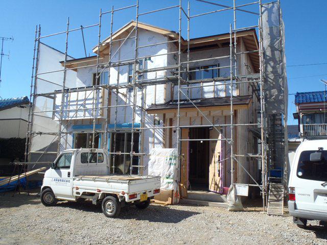 ☆先週の工事☆ 木工事(外壁下地材打ち、壁断熱材入れ、床フローリング 貼り、他) ☆今週の予定工事☆ 木工事(外壁下地材打ち、軒天下地及び軒天ボード貼り、 床フローリング貼り、窓枠取付、他) ユニットバス据付