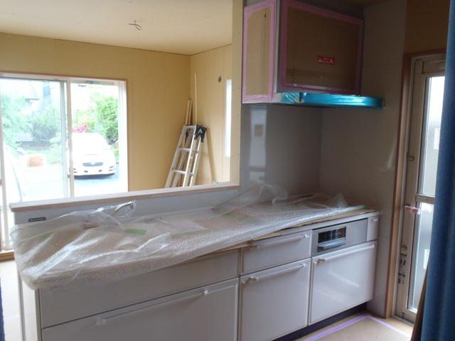 ☆先週の工事☆ 木工事(階段造作、幅木・廻し縁取付、建具吊り込み、他) 外部足場解体 システムキッチン据付 ☆今週の予定工事☆ 木工事(幅木・廻し縁取付、建具吊り込み、他) 内装工事(クロス下地、クロスパテ) 外部給排水埋設
