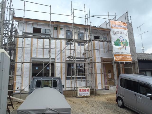 ☆先週の工事☆ 木工事(軒天ケイカル版貼り、2階天井ボード貼り、 壁断熱材入れ、床フローリング貼り、他) 外壁工事(外壁スターター金具、コーナー役物取付、他) ユニットバス据付 ☆今週の予定工事☆ 木工事(1階天井下地組み・天井ボード貼り、床フローロング 貼り、他) 外壁工事(平板サイディング貼り、他)