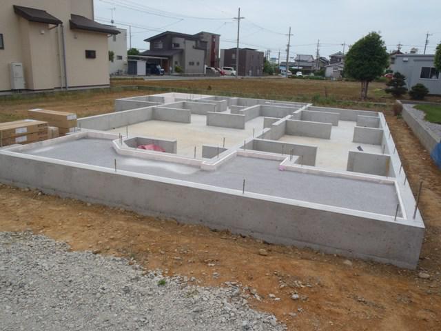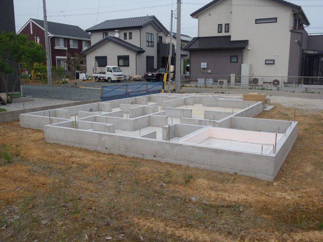 ・基礎工事、掘削部埋め戻し整地し、タイル下地・浴室下地 コンクリート打ち完了となりました。 ・上棟に向け、墨出し、構造材・下地木材搬入、土台据付・ 1階床下地組へと大工木工事に取り掛かりました。 ・当社5月連休を頂きありがとうございました。