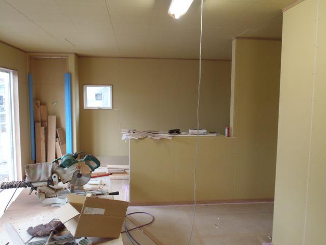 ☆先週の工事☆ 木工事(1階ドア開口枠組立・取付、壁ボード貼り、 幅木・廻し縁取付、他) 外壁工事(平板サイディング貼り、目地コーキング打ち) ☆今週の予定工事☆ 木工事(2階ドア開口枠組立・取付、壁ボード貼り、 幅木・廻し縁取付、他) 外壁工事(平板サイディング貼り、目地コーキング打ち) システムキッチン据付