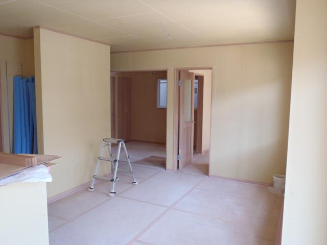 ☆先週の工事☆ 木工事(壁ボード貼り、幅木・廻し縁取付、建具吊り込み、 可動棚、他) 板金工事(破風・鼻隠し板金、樋掛け) ☆今週の予定工事☆ 内装工事(クロス下地、クロスパテ、クロス貼り、他) 外部換気フード取付、TVアンテナ取付、電力引込口 金具取付 外部足場解体 外部給排水工事