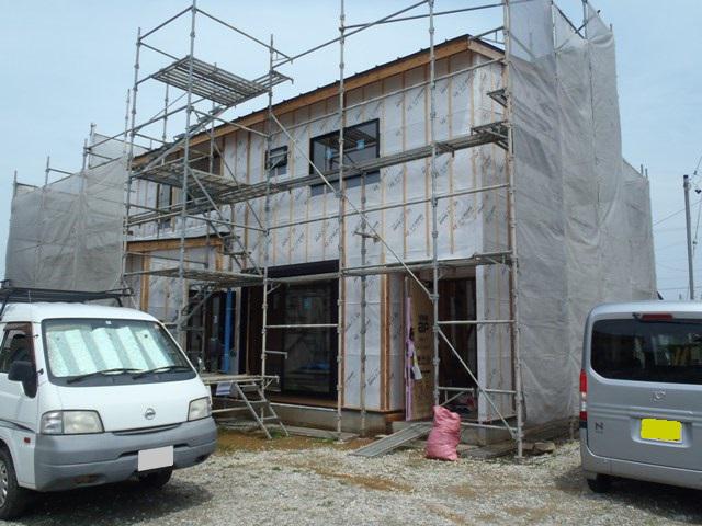 及び軒天ボード貼り、壁断熱材入れ、他)