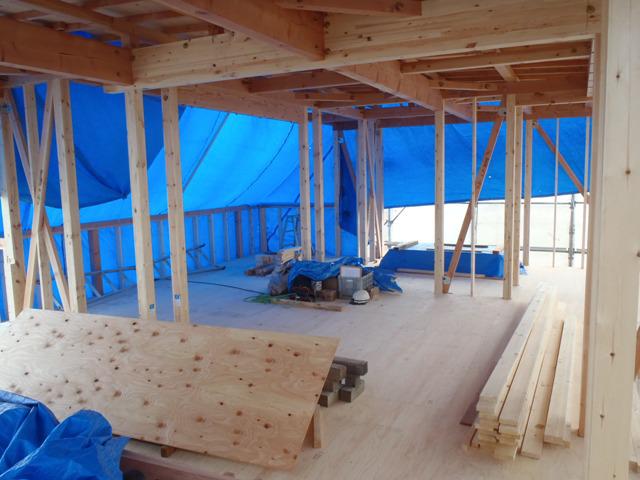 ☆先週の工事☆ 上棟 木工事(筋カイ・間柱入れ、構造金物取付、他) 屋根下地材葺き ☆今週の予定工事☆ 木工事(サッシ開口造作、ベランダ下地、他)