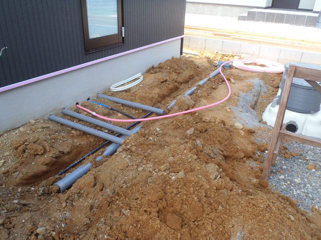 ・外部工事、給排水・雨水配管埋設、エコキュート配管・