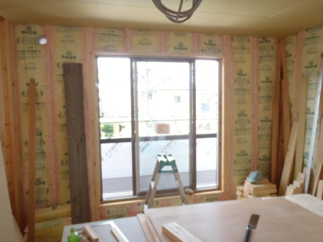 ★今週の予定工事★ 木工事(床フローリング貼り、壁断熱材入れ、窓枠取付、 壁プラスターボード貼り、他) 外壁工事(サイディング貼り、他)