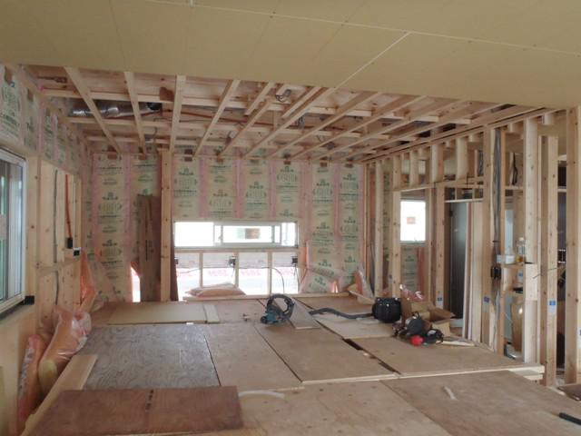 木工事(天井断熱材入れ、天井ボード貼り、壁断熱材入れ、