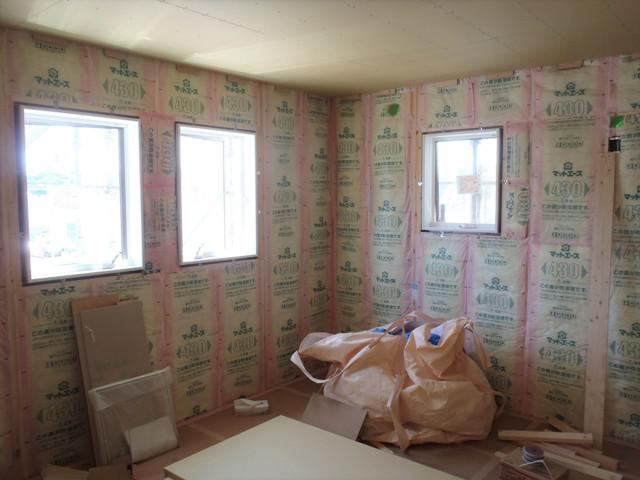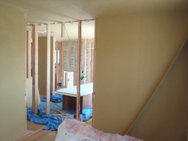 ボード貼りへと進み、各部屋が徐々に仕切られドア開口枠
