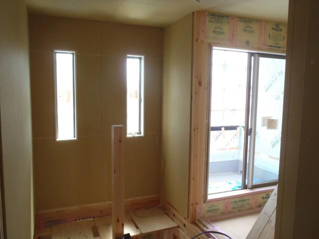 ★今週の予定工事★ 木工事(壁下地合板・プラスターボード貼り、ドア開口枠 組立取付、他) 外壁工事(コーキング打ち、他)
