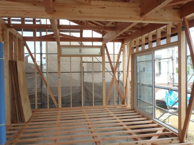 木工事(サッシ取付、床下地断熱材入れ、外壁下地ボード