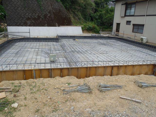 ★先週の工事★ 基礎工事(鉄筋加工、鉄筋組み、配筋検査、ベースコン クリート打ち、ベース型枠解体、他) ★今週の予定工事★ 基礎工事(立ち上がり部型枠組み、アンカーボルト類 設置、立ち上がり部コンクリート打設、他)