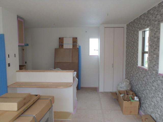 ★先週の工事★ 内装仕上げ工事(クロス貼り、クッションシート貼り、他) 階段手摺取付 エコキュートベースコンクリート