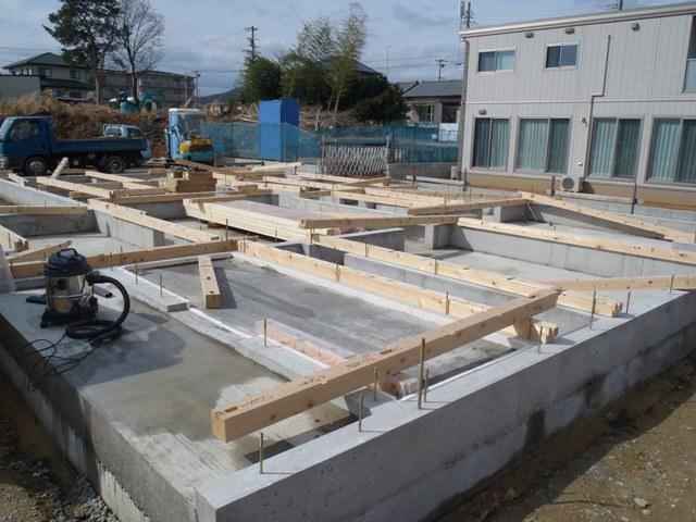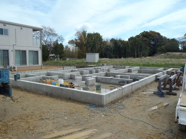 ・基礎工事、立上り部コンクリート打ち、型枠解体、玄関・