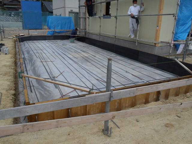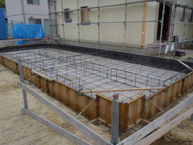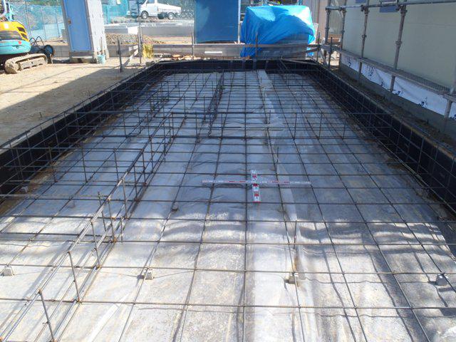 ★先週の工事★ 基礎工事(ベース型枠組み、鉄筋加工・鉄筋組み、保証機構 JIO配筋検査、ベースコンクリート打ち、他)