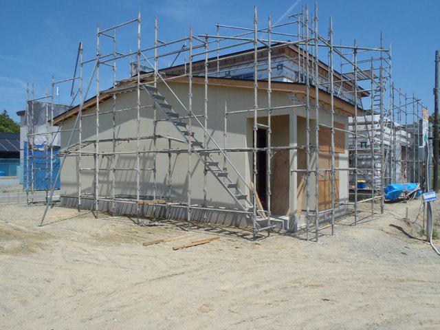★今週の予定工事★ 木工事(天井ボード貼り、天井断熱材入れ、サッシ取付、 軒天下地組み、軒天ボード貼り、他) 外装透湿防水シート貼り